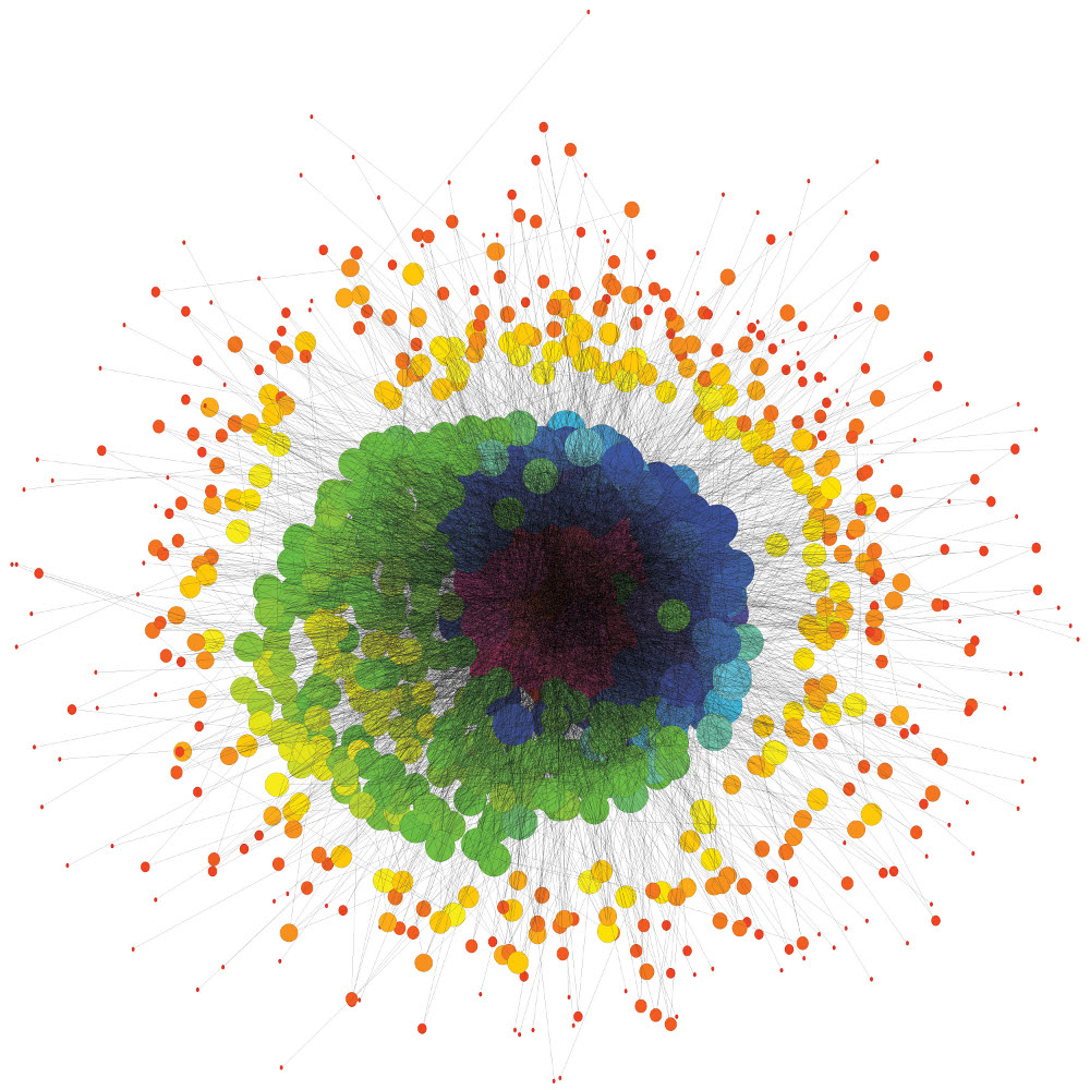 Synthetic graph generated by Kronecker multiplication, a small-scale version of one of the Graph500 tests. (Sandia National Laboratory/Jeremiah Willcock, Indiana University). Larger version.