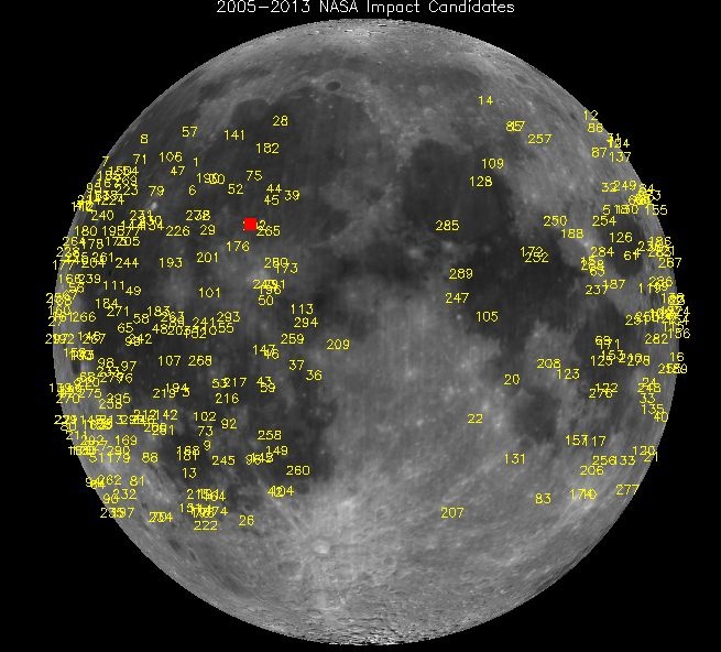 ![]() | Scorecard for the March 17, 2013, meteor impact at Mare Imbrium. (Still image from a NASA YouTube Video.) |