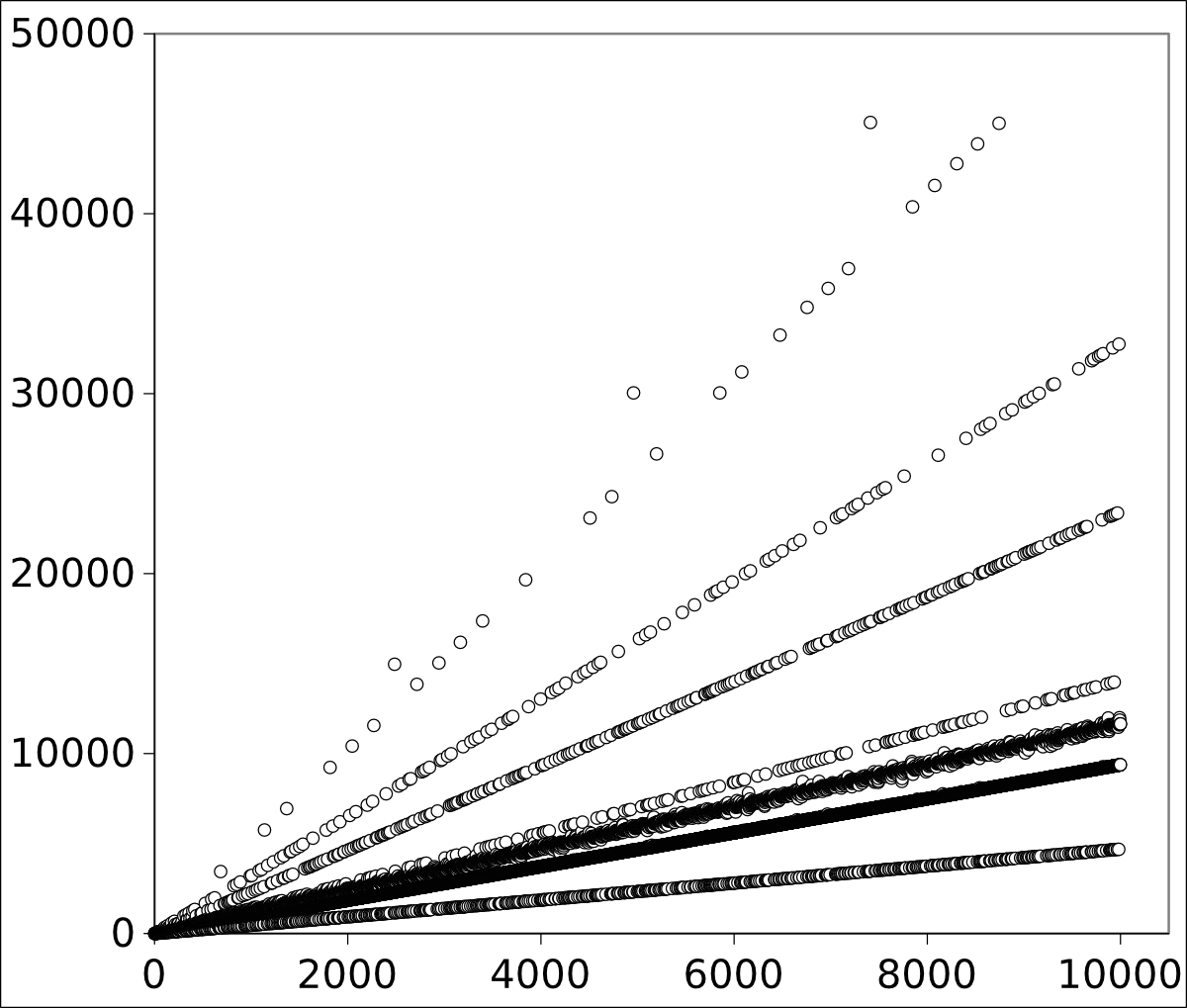 C++ program.[2] The first 10,000 terms of integer sequence A098550, as calculated by my program, appear in the plot below.