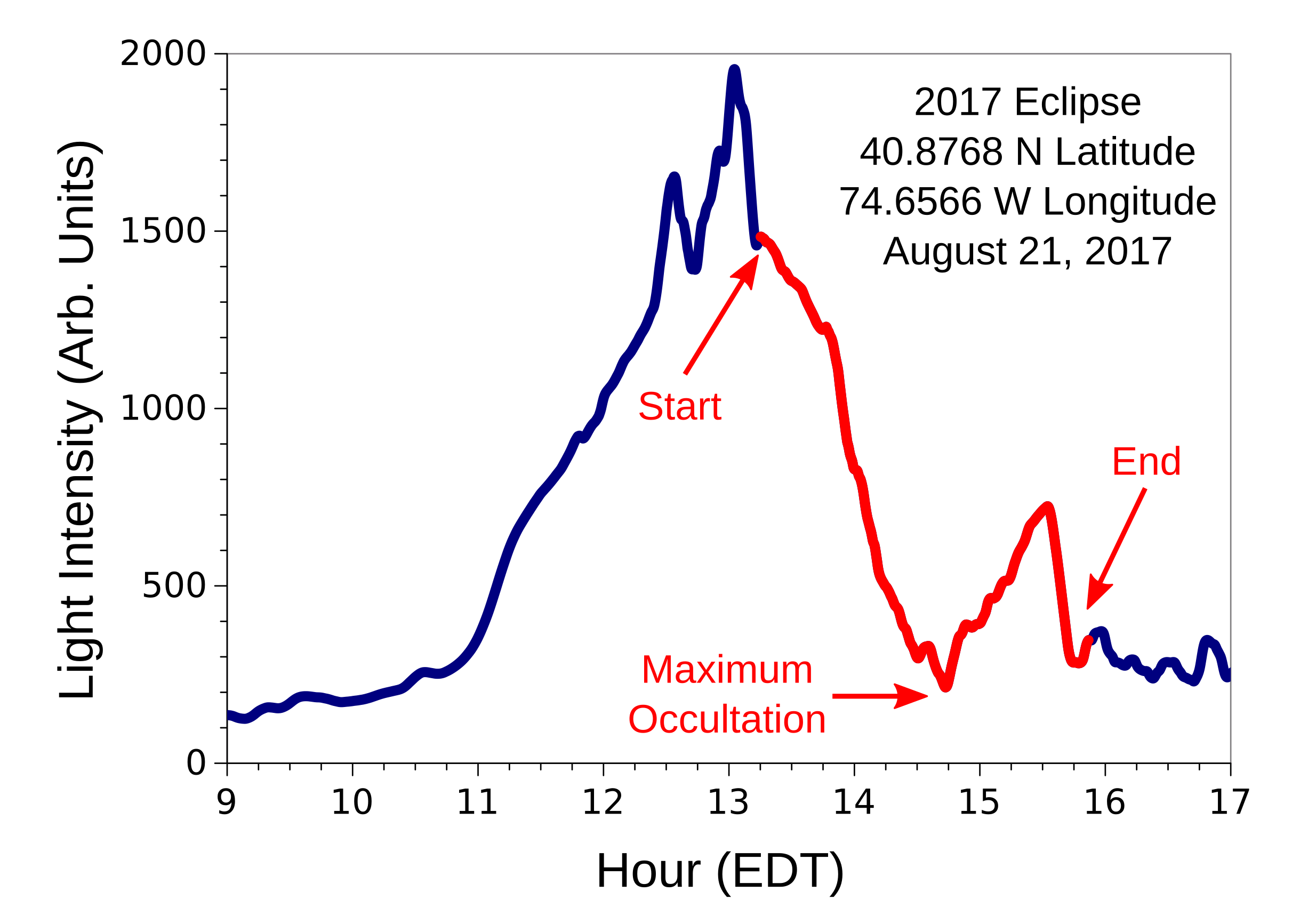 The clouds notwithstanding, there was a noticeable darkening at maximum occultation. As the data show, the lightness of the sky was equivalent to what's experienced early morning or late afternoon.