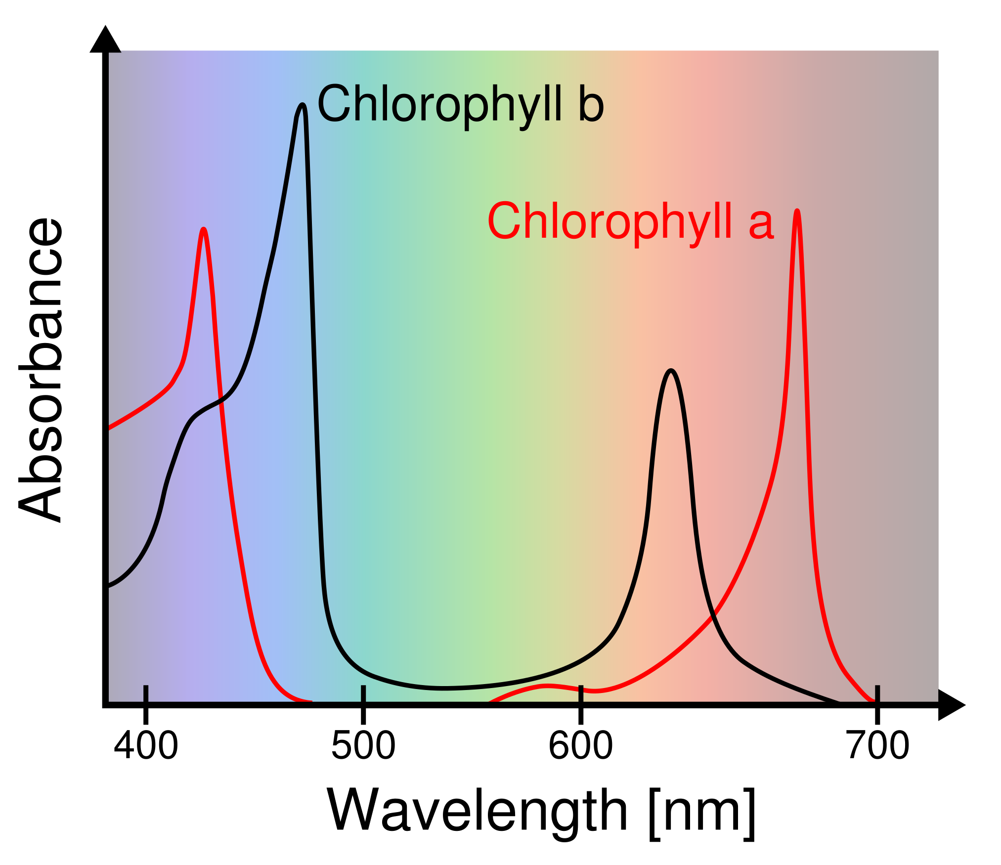 Chlorophyll a and Chlorophyll b absorbance spectra.