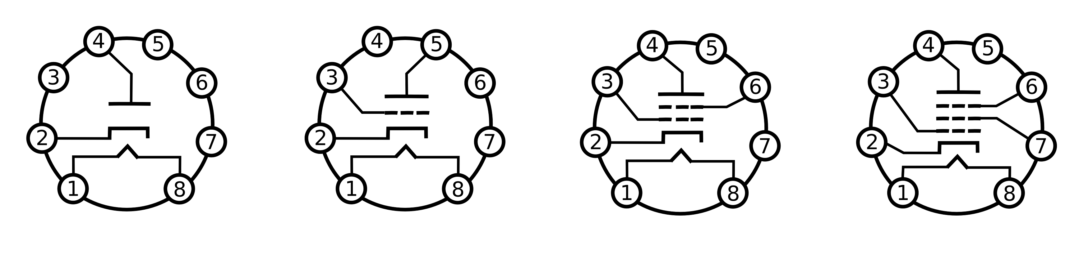 Symbols for vacuum tubes. From left to right, a diode, tridode, tetrode, and pentode. The 12AX7 dual triode was my favorite tube for low-noise microphone preamplifiers. (Click for larger image.)