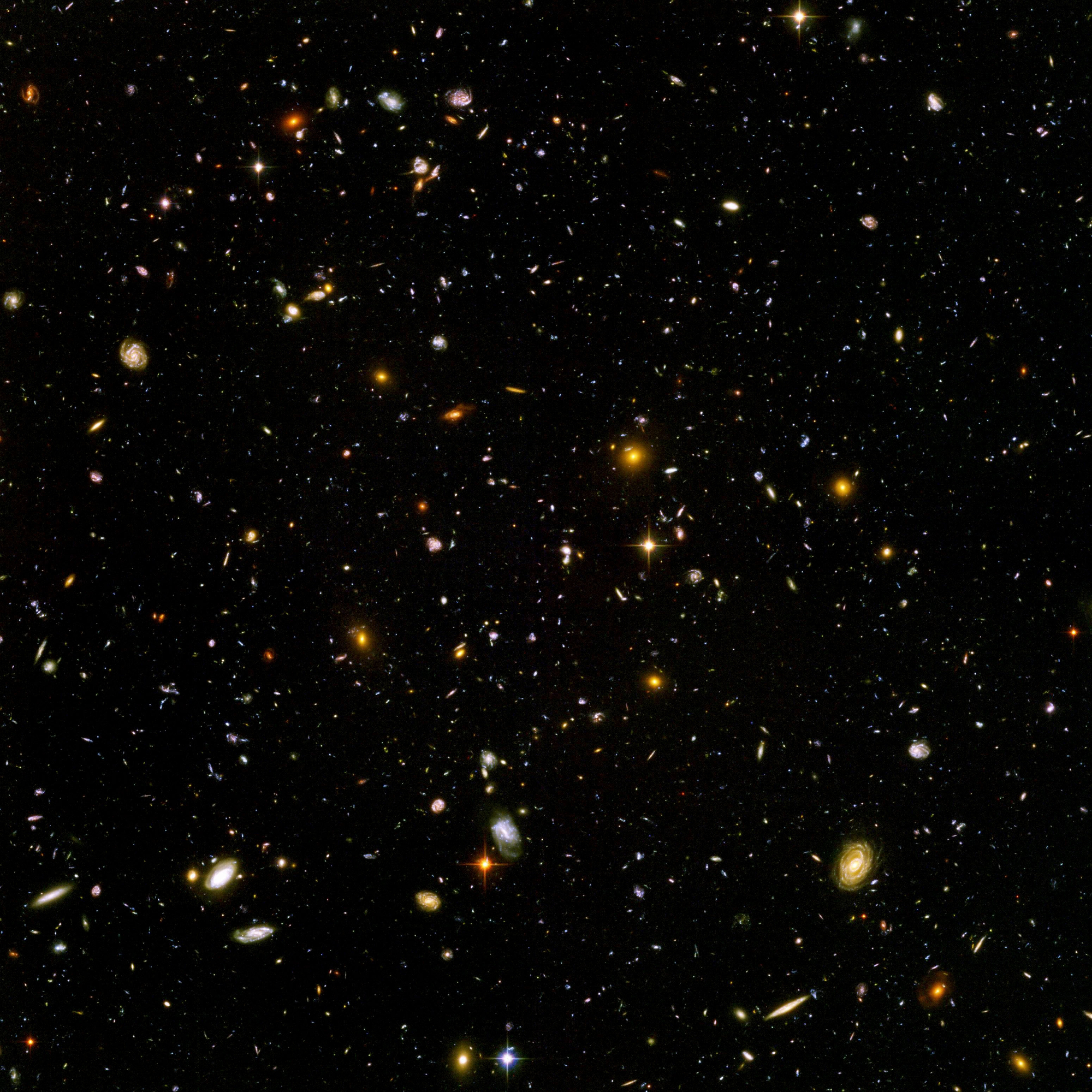 This image of a very small patch of sky in the constellation, Fornax, was created from images acquired from September 3, 2003, through January 16, 2004, and it illustrates the blackness of regions between galaxies at this high resolution.