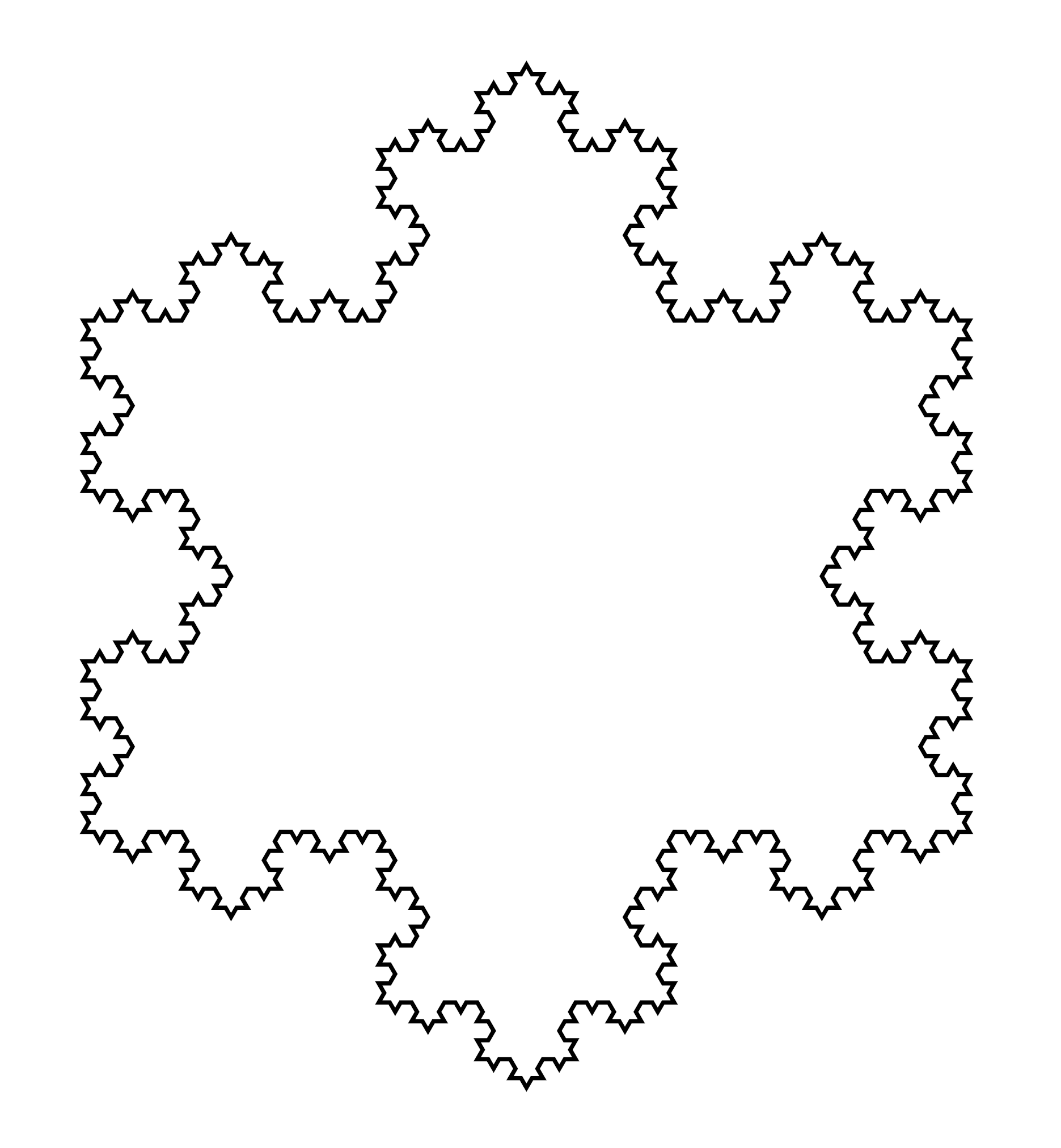 In the limit of an infinite number of such iterations, the Koch snowflake has a fractal dimension, ln(4)/ln(3), or about 1.26.