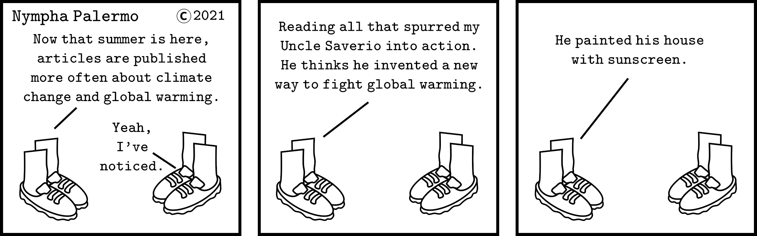 A solar geoengineering themed cartoon. I wrote about how sunlight-reflecting paint can mitigate excess heating of buildings and vehicles in two previous articles,