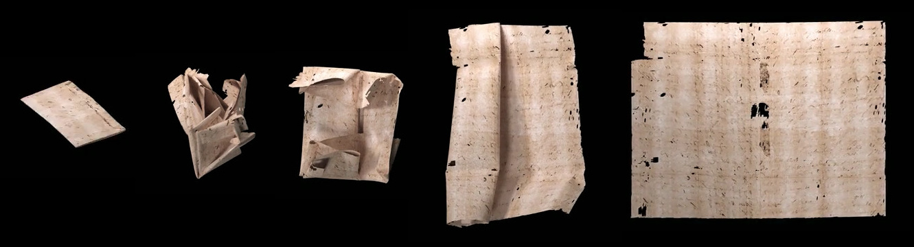 computer unfolding of letter DB-1538 from the Brienne Collection, a collection that includes 577 letterpackets that have never been opened. (Still images from a Queen Mary University of London video by the Unlocking History Research Group. Click for larger image.[7])