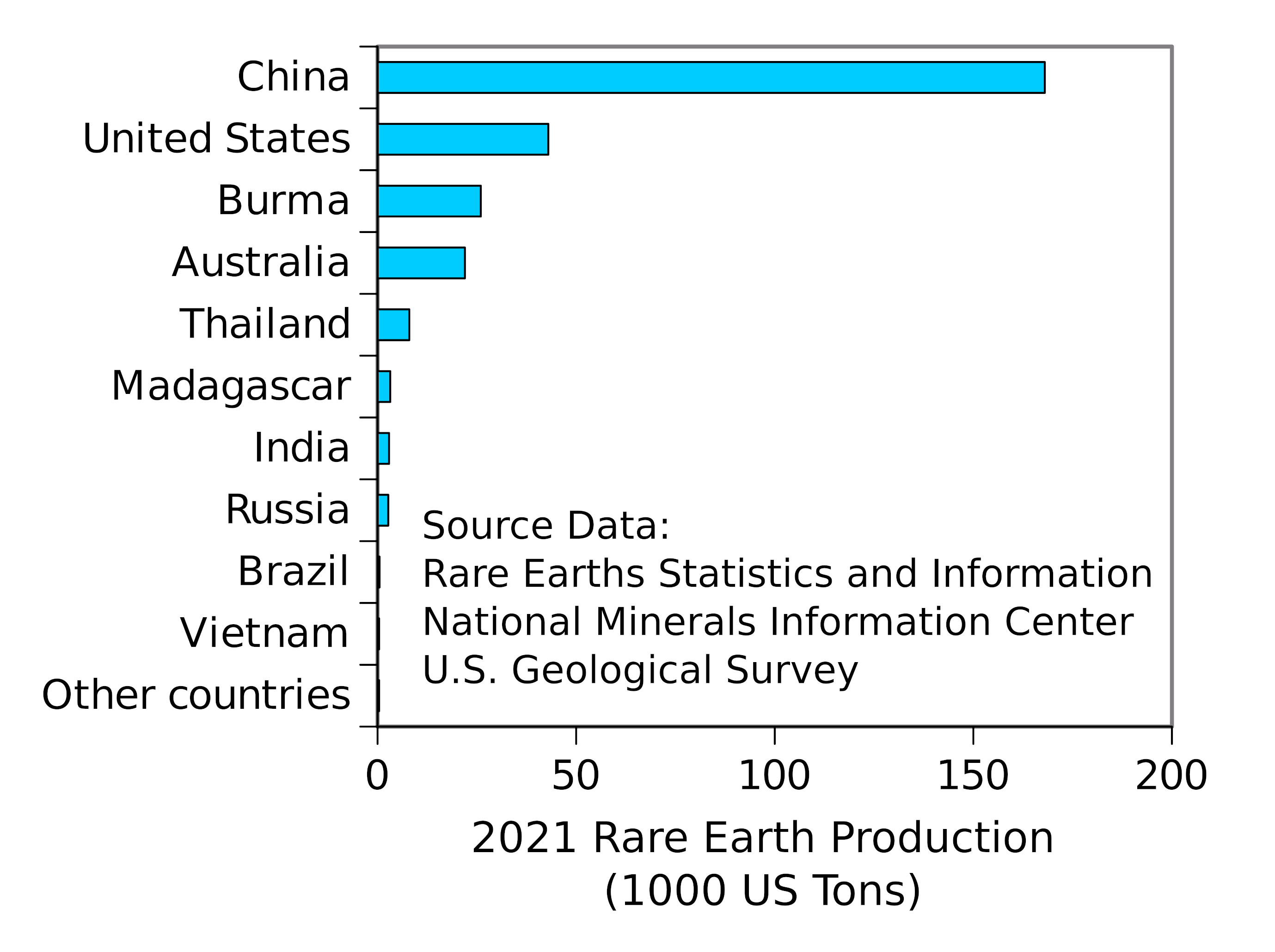 - Rare Earths Statistics and Information, National Minerals Information Center, U.S. Geological Survey, 2022.
