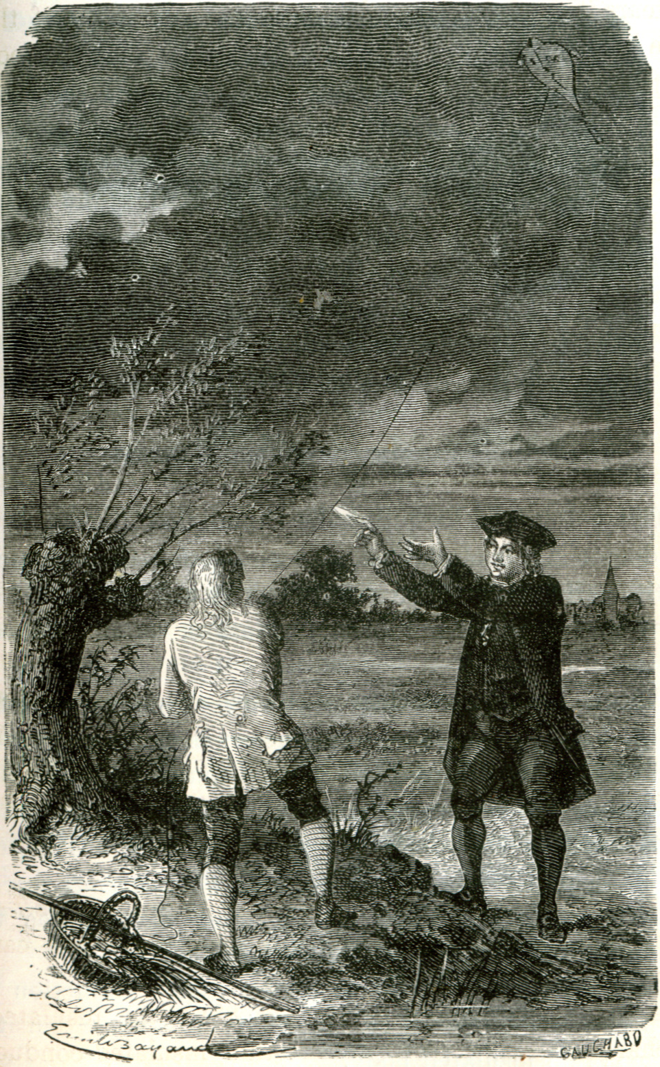 The popular image of lightning striking the kite is wrong. The kite just allowed charge from the upper atmosphere to be conducted to ground level.
