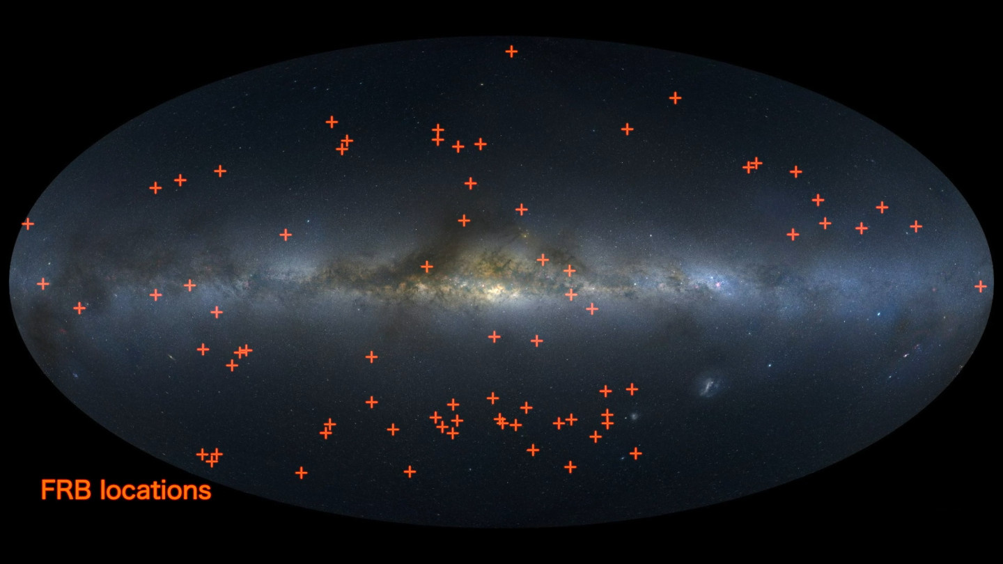 Locations of some fast radio bursts. (screenshot of a NASA Science Visualization Studio animation.[11] Click for larger image.)