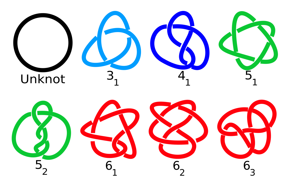 These knots are labeled using the Alexander-Briggs notation, introduced in a 1927 paper by mathematicians, James W. Alexander and Garland B. Briggs.