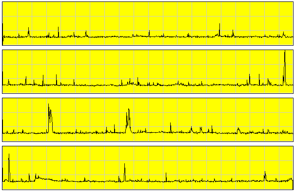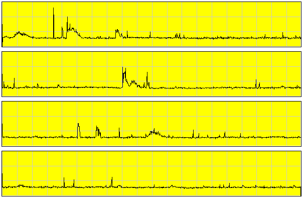 The following are the raw data for the 2000 Leonids from midnight, 11/17/00 through 11/18/00 4:00 AM EST. Each strip is a 15 minute trace.